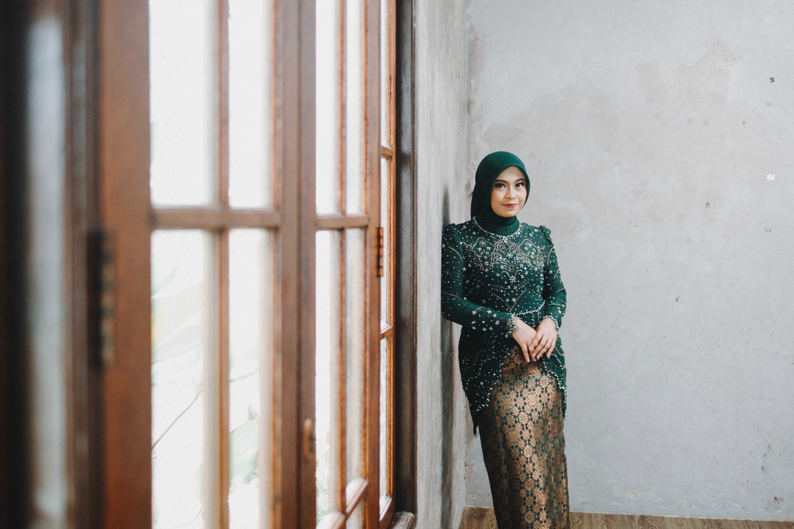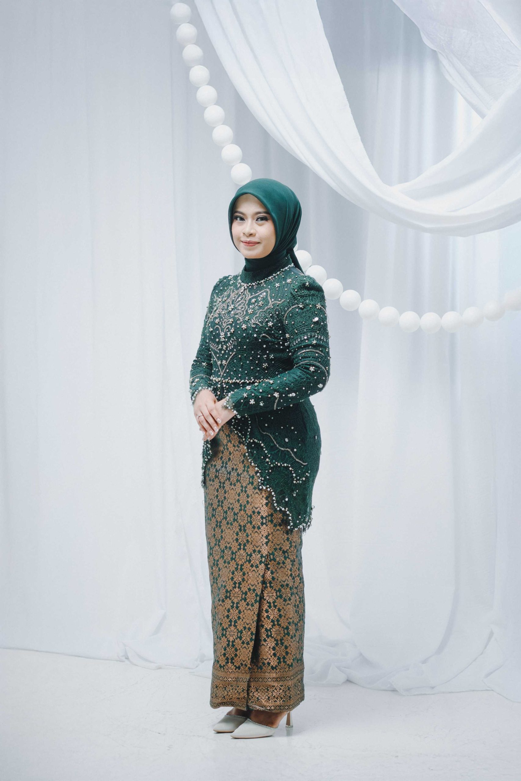 Koordinasi Warna: Jika pasangan pria menggunakan PDU, pasangan wanita bisa memilih Kebaya dengan warna yang komplementer (seperti warna Hijau, merah marun atau emas) agar terlihat serasi di kamera.