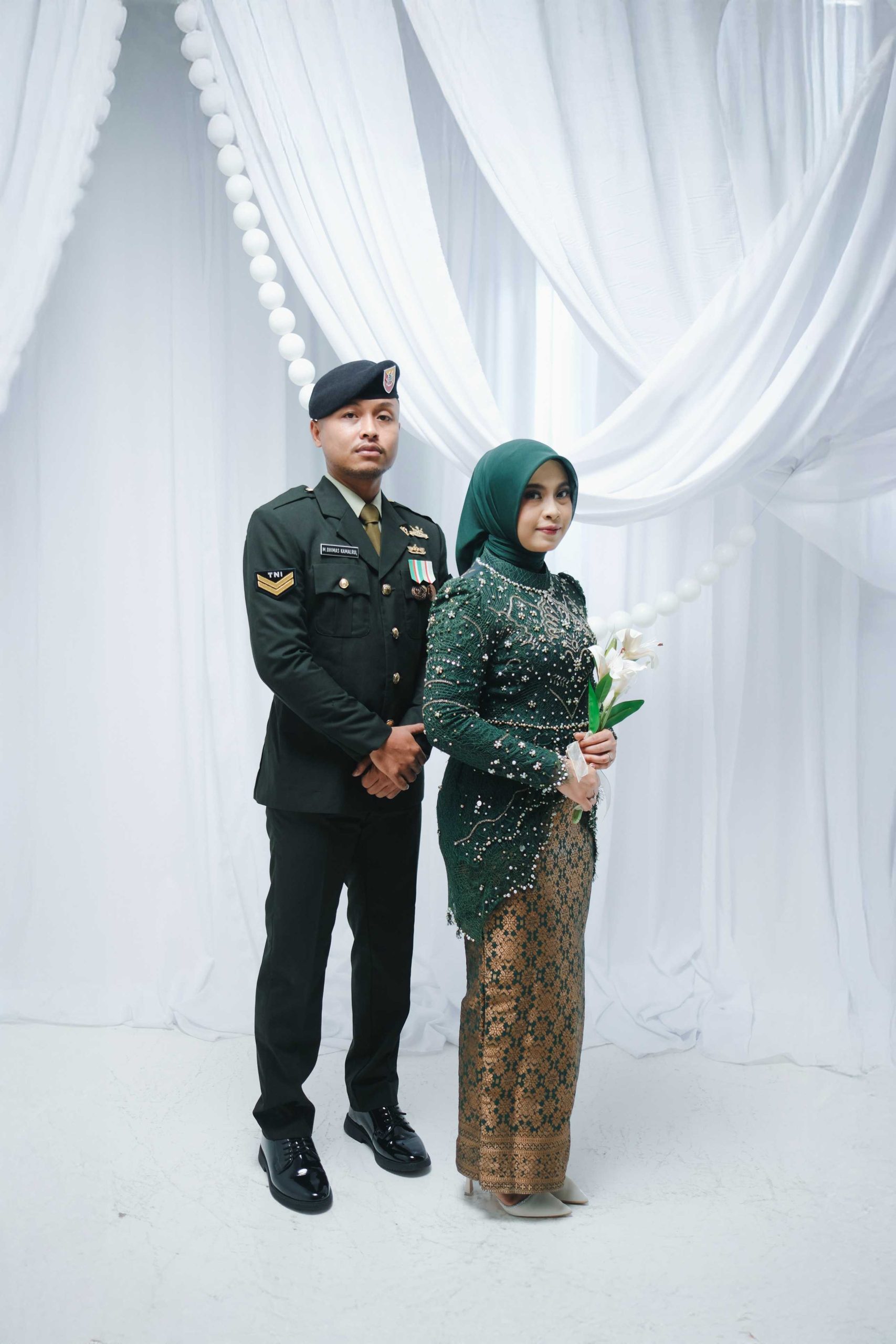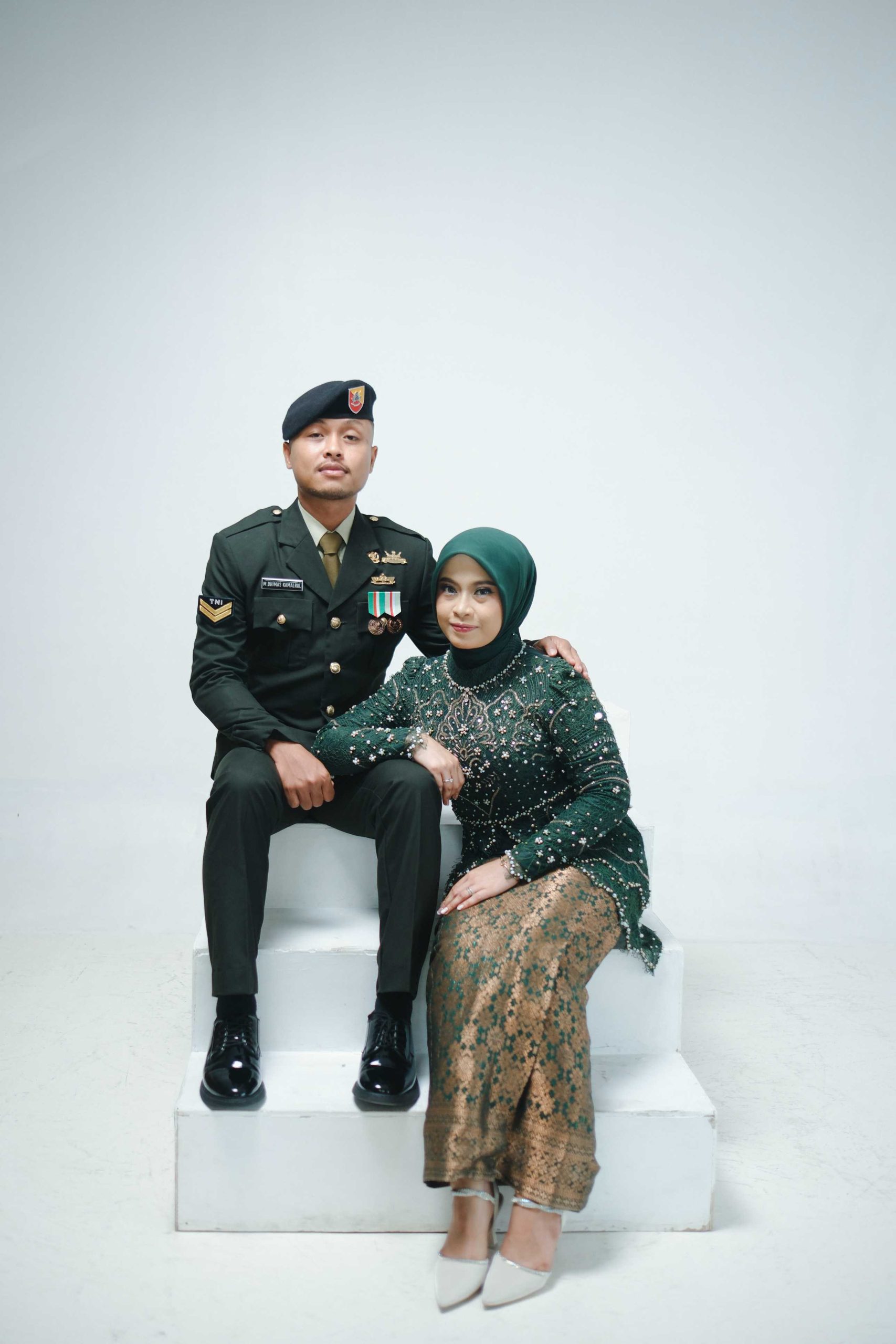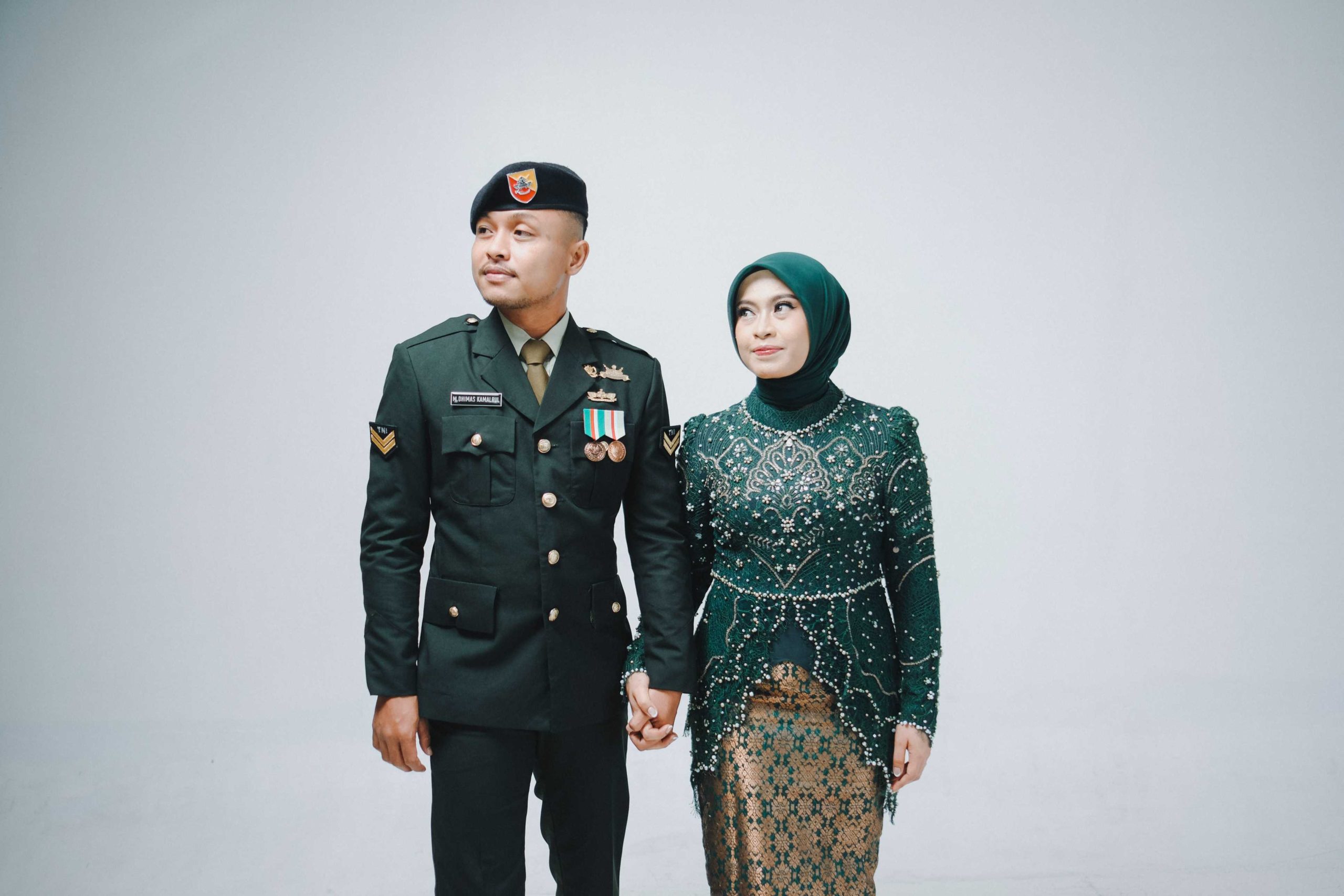 Lighting Profesional: Kami menggunakan teknik pencahayaan yang mampu menonjolkan detail kain kebaya dan ketegasan garis seragam militer.