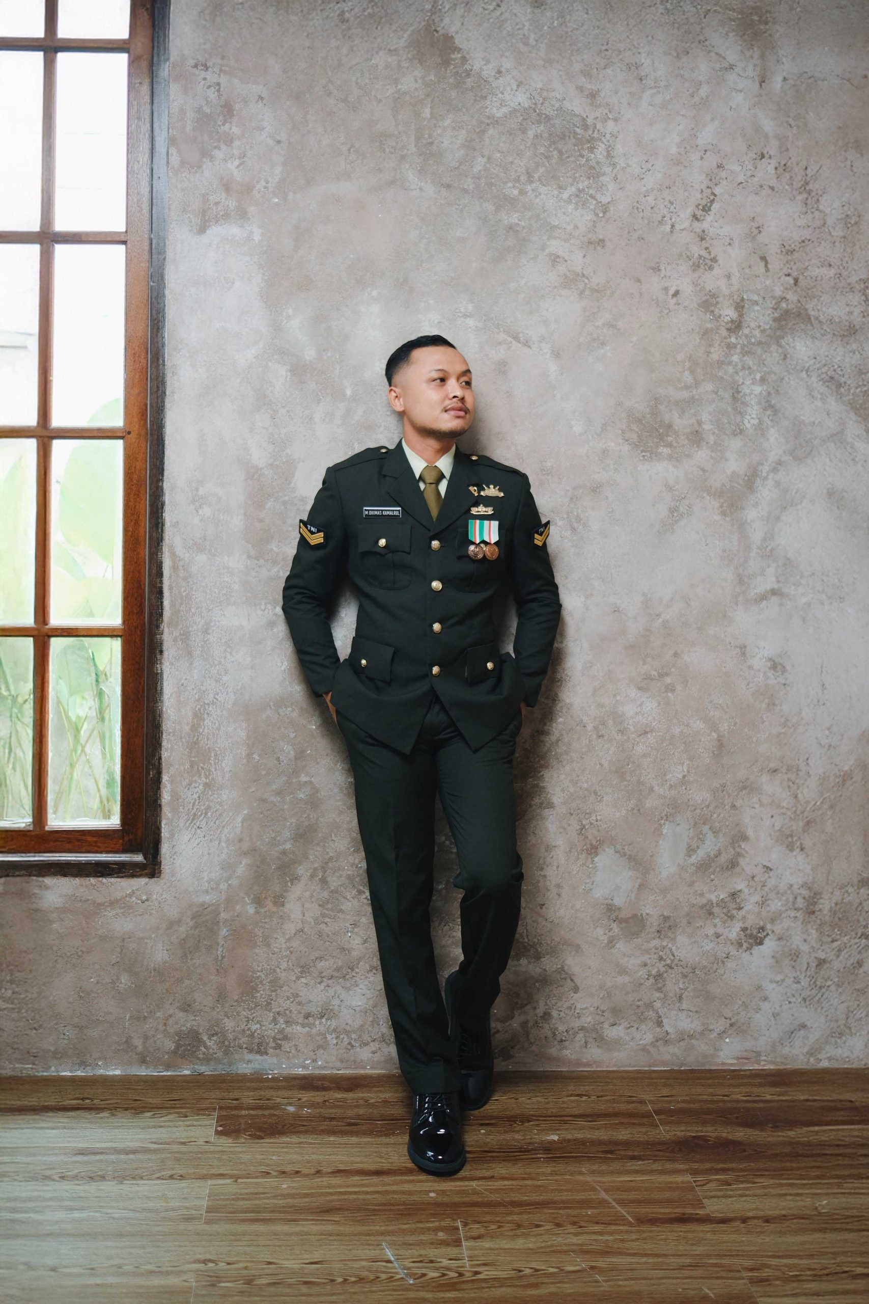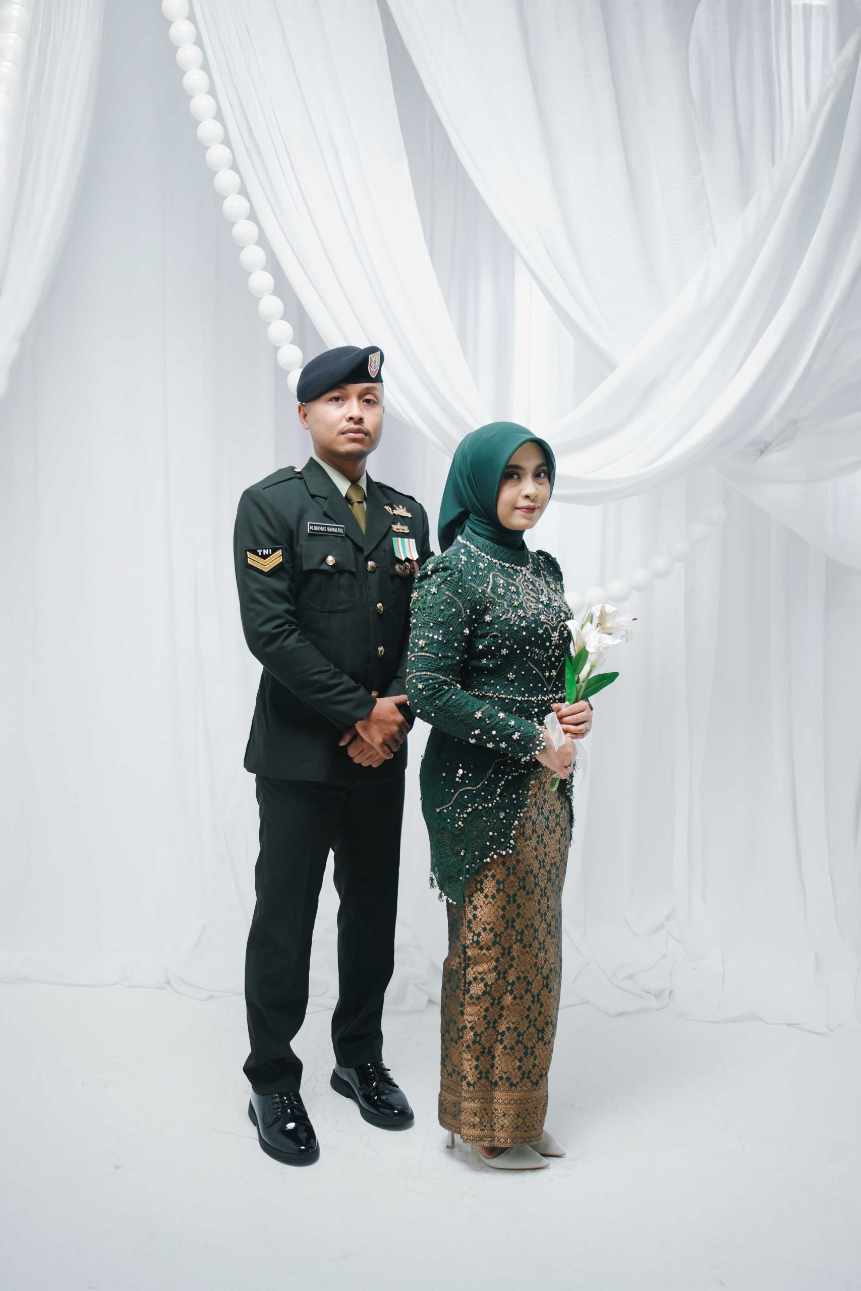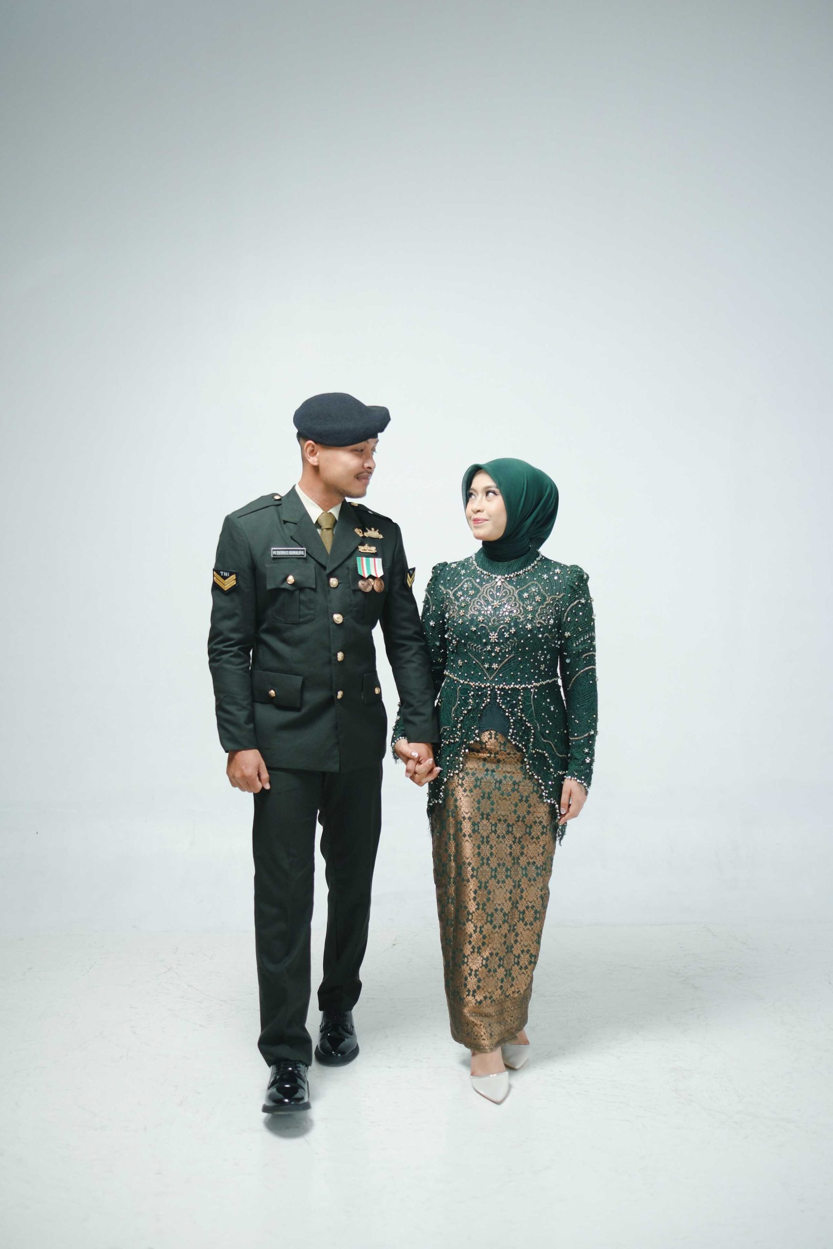 Lighting Profesional: Kami menggunakan teknik pencahayaan yang mampu menonjolkan detail kain kebaya dan ketegasan garis seragam militer.